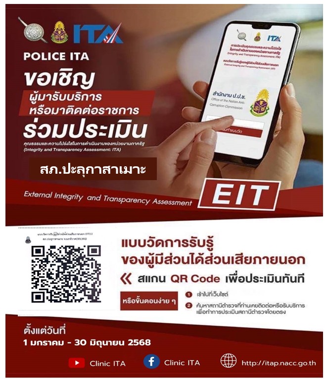 ขอเชิญผู้มารับบริการหรือผู้มาติดต่อราชการร่วมประเมิน