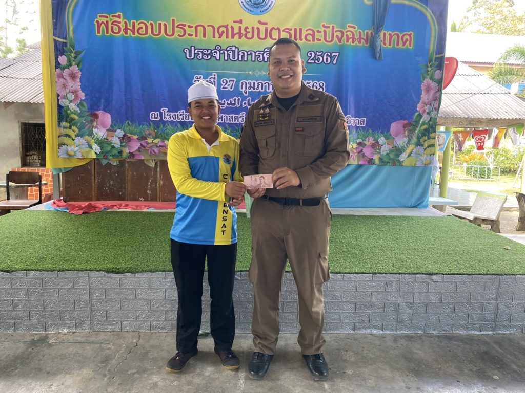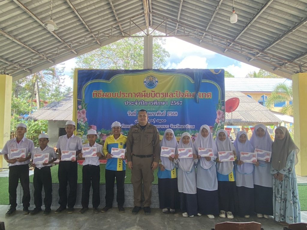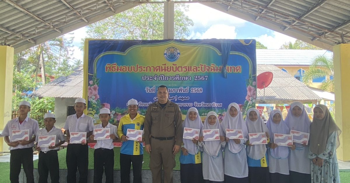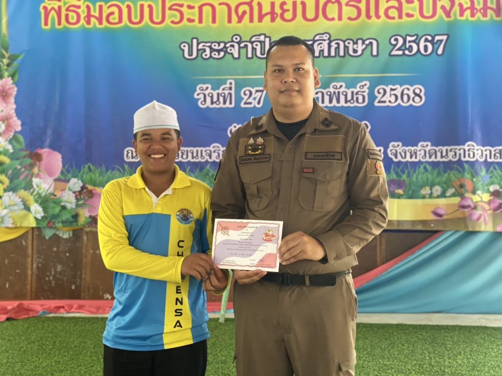 มอบประกาศนียบัตรโครงการการศึกษาเพื่อต่อต้านการใช้ยาเสพติดในเด็กนักเรียน D.A.R.E. ประจำภาคเรียนที่ 2 ปีการศึกษา 2567 และมอบทุนการศึกษาให้กับนักเรียนที่เขียนเรียงความดีเด่น ให้กับเด็กนักเรียน โรงเรียนเจริญศาสตร์ ต.ปะลุกาสาเมาะอ.บาเจาะ จว.นราธิวาส