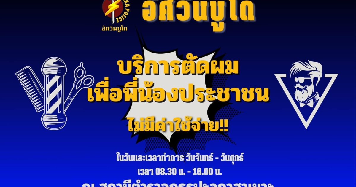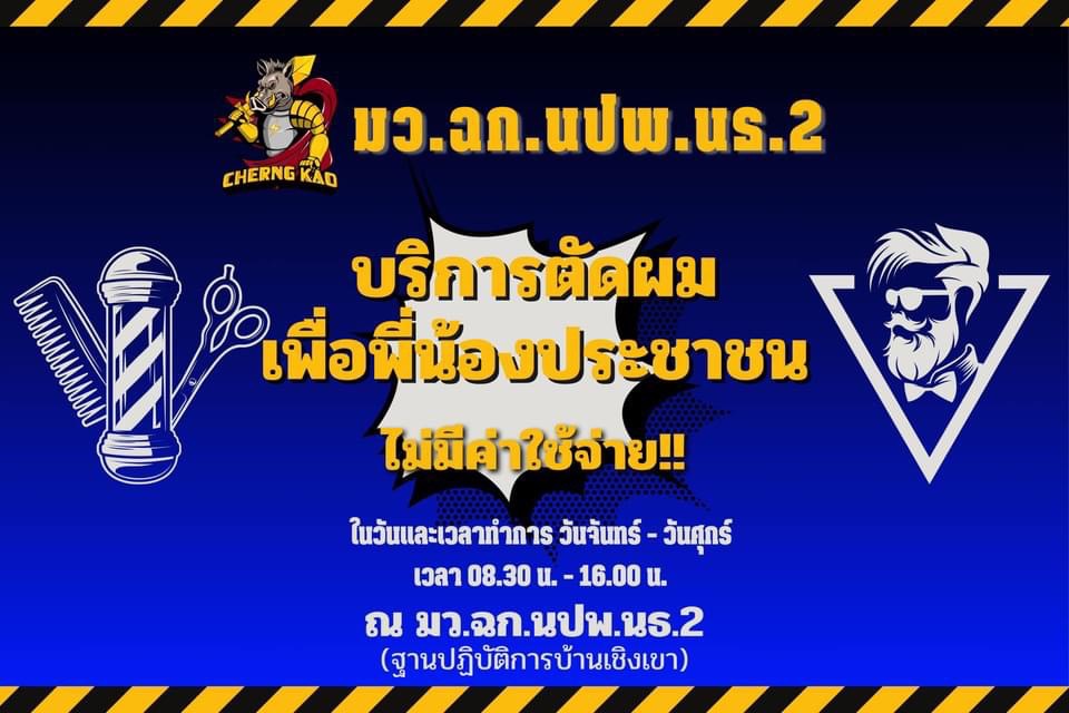 และติดตั้งป้ายบริการตัดผมโดยไม่มีค่าใช้จ่าย พร้อมน้ำดื่มเย็นๆให้กับพี่น้องประชาชนในพื้นที่และผู้ที่สัญจรผ่านไปมา เพื่อสามารถเป็นที่พึ่งพาสำหรับพี่น้องประชาชนและช่วยลดรายจ่ายให้พี่น้องประชาชนอีกทางหนึ่ง