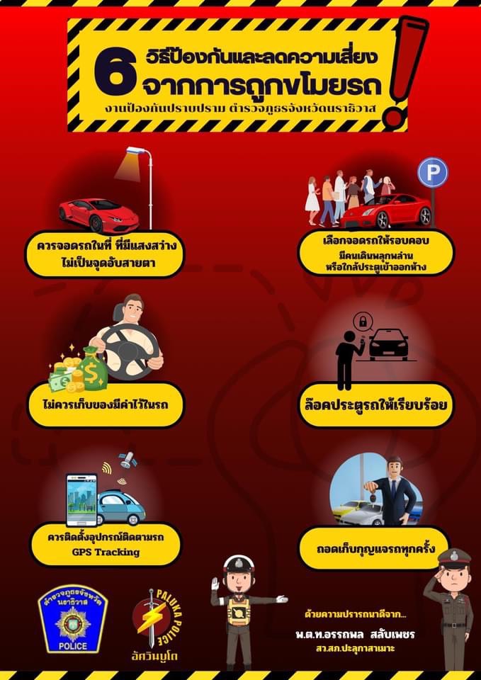ตำรวจภูธรจังหวัดนราธิวาส และ สถานีตำรวจภูธรปะลุกาสาเมาะ ขอประชาสัมพันธ์ “6วิธีป้องกันและลดความเสี่ยง