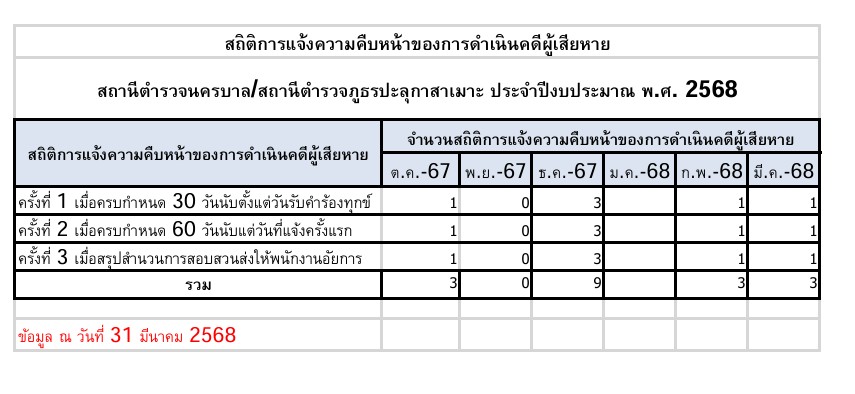 สถิติการเเจ้งความคืบหน้าการดำเนินคดีของผู้เสียหาย