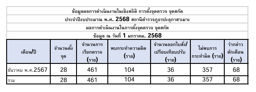 ข้อมูลการดำเนินงานเชิงสถิติการตั้งจุดตรวจ จุดสกัด