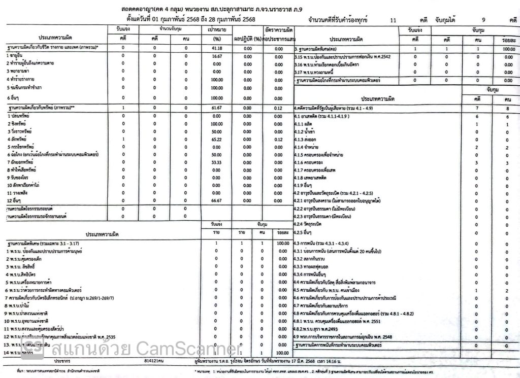 สถิติคดีอาญา 4 กลุ่มประจำเดือน ก.พ. 68