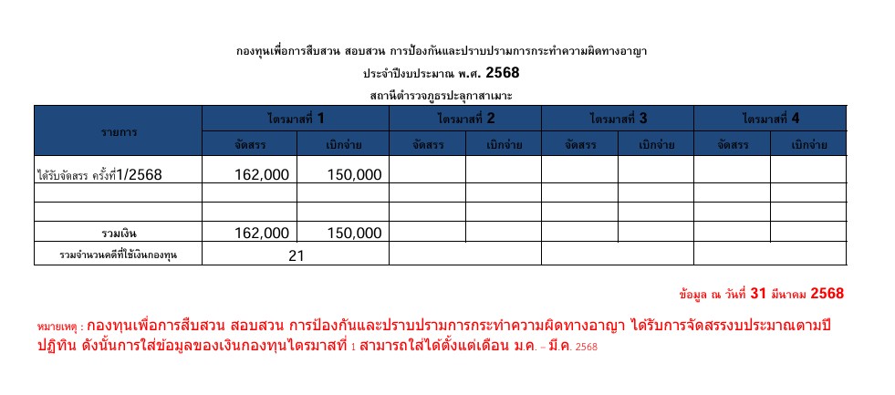 013 กองทุนเพื่อการสืบสวน สอบสวน การป้องกันและปราบปรามการกระทำความผิดทางอาญา