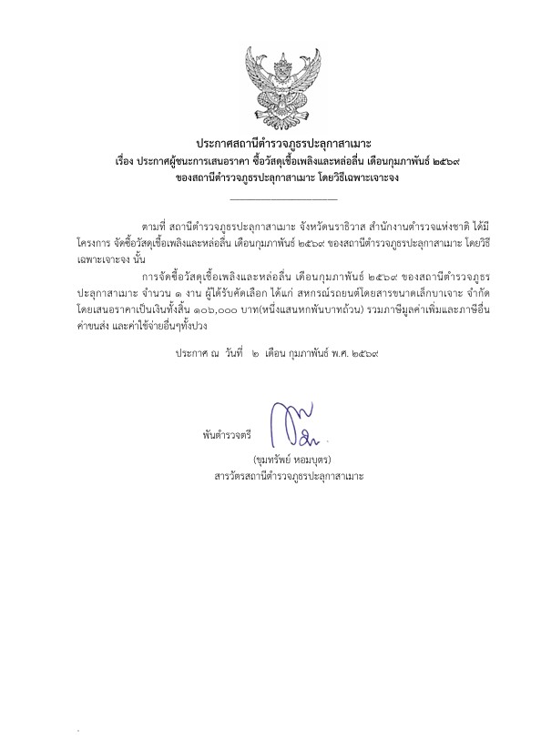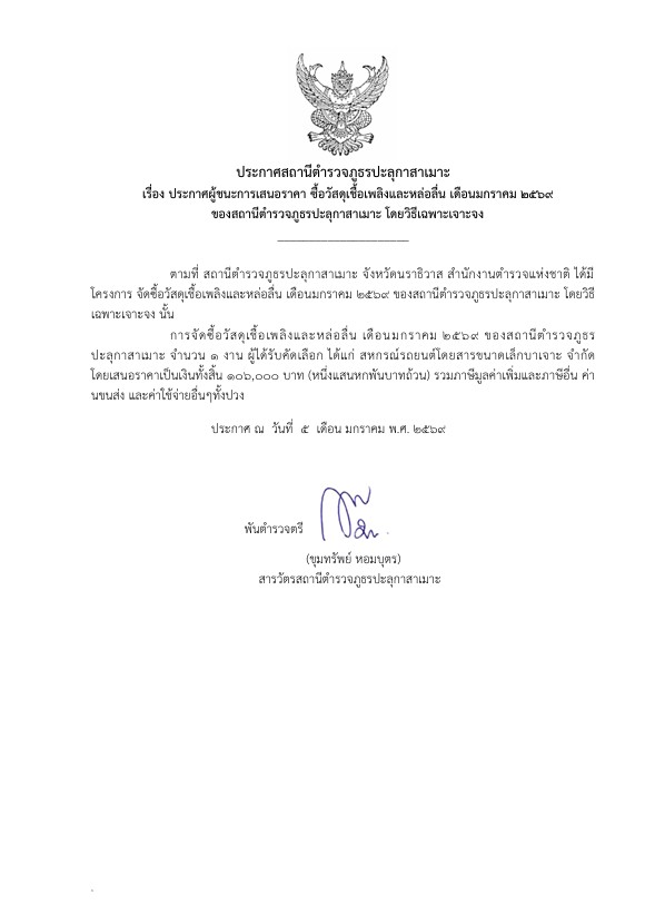 ประกาศจัดชื้อจัดจ้าง ประจำเดือน มกราคม 2569