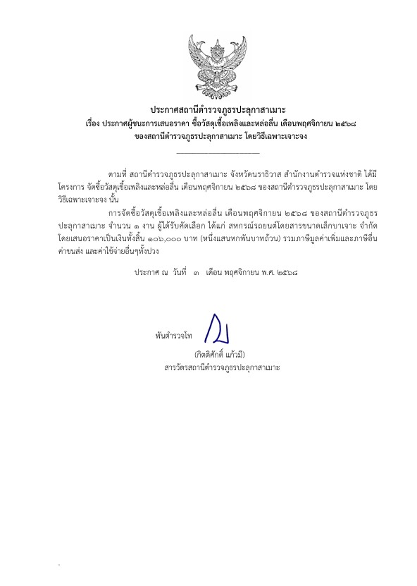 ประกาศจัดชื้อจัดจ้าง ประจำเดือนพฤศจิกายน 2568