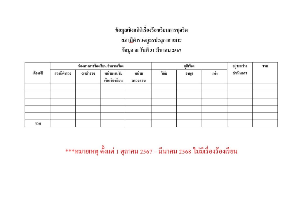 ข้อมูลเชิงสถิติเรื่องร้องเรียนการทุจริตประจำปี